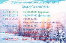 Афиша новогодних мероприятий МБОУ "СОШ №1" 26.12.2019