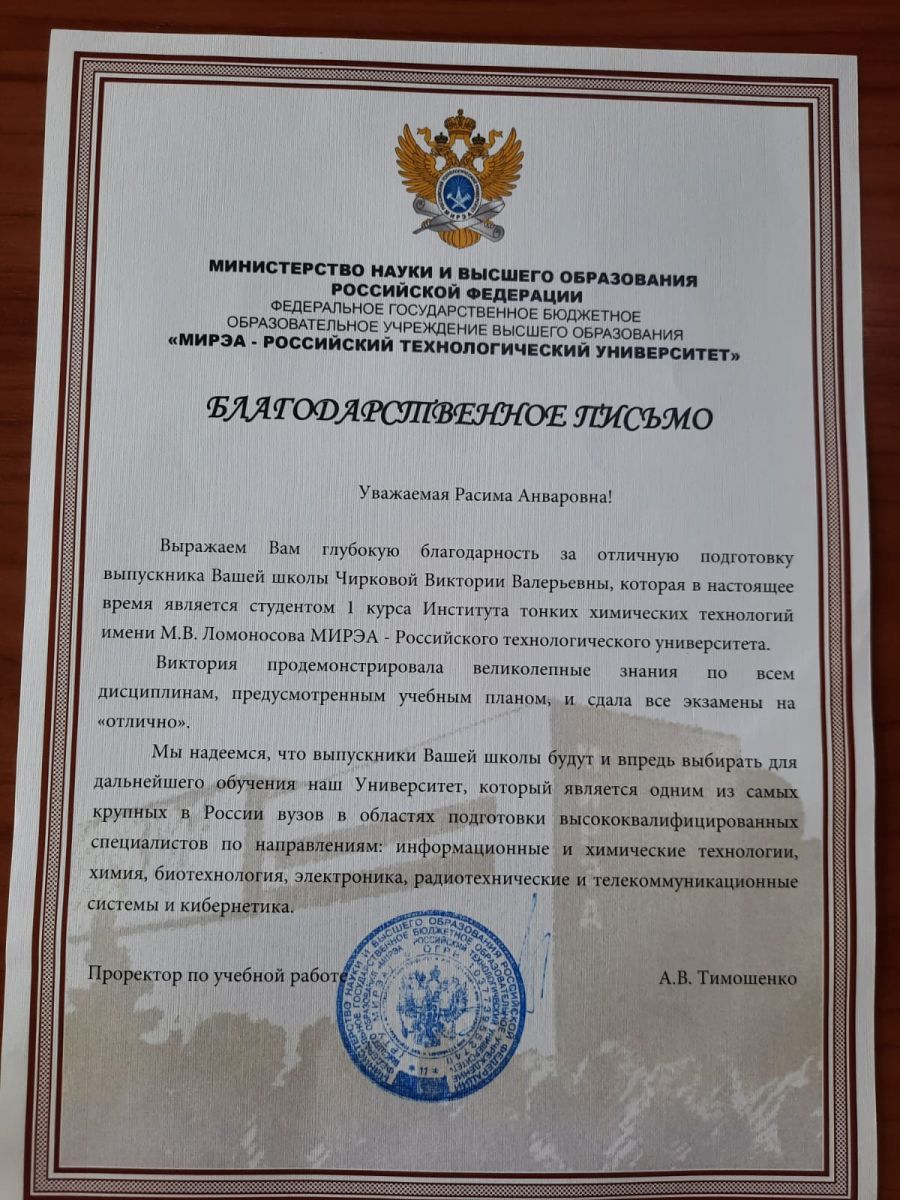 Гордимся своими выпускниками! Чиркова Виктория Валерьевна. Выпуск 2022