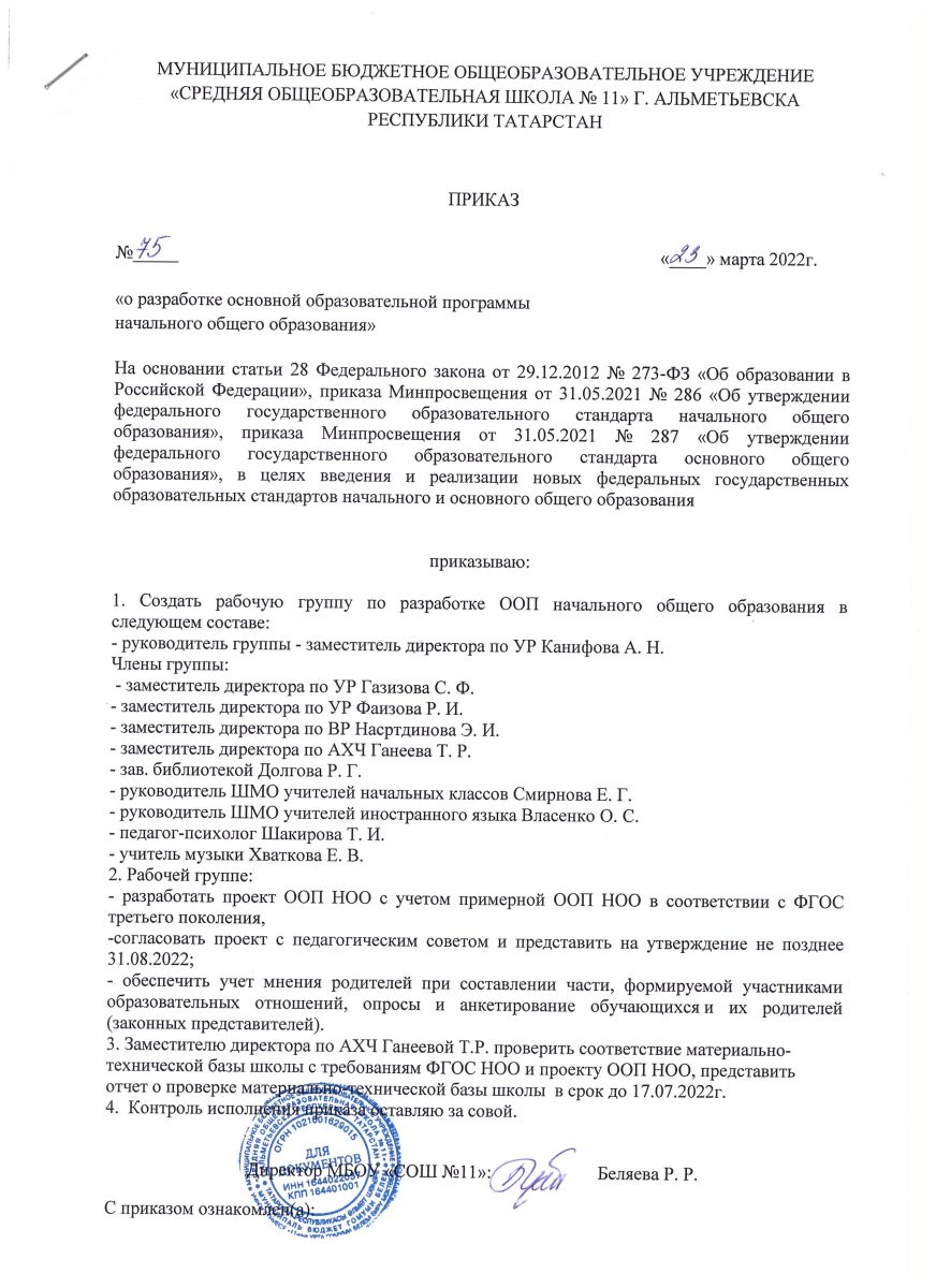 Муниципальное бюджетное общеобразовательное учреждение «Средняя общеобразовательная школа №11» г. Альметьевска Республики Татарстан