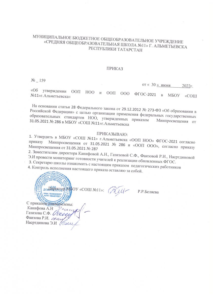 Приказ об утверждении ООП НОО и ООО