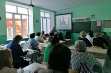 В актовом зале учащиеся старшего звена прослушали лекцию, просмотрели ролики. -