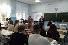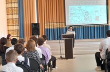 23.09.2022 года в актовом зале школы с учащимися 9-11 классов была проведена встреча с инспектором ПДН Харитоновой Р.Р.