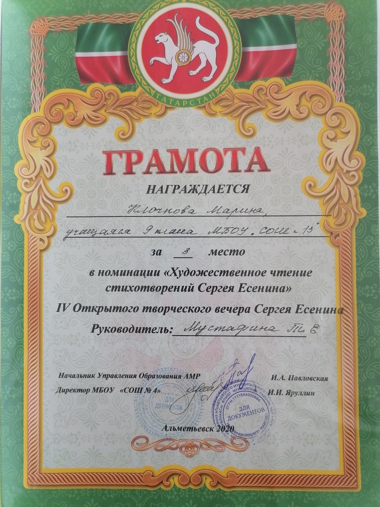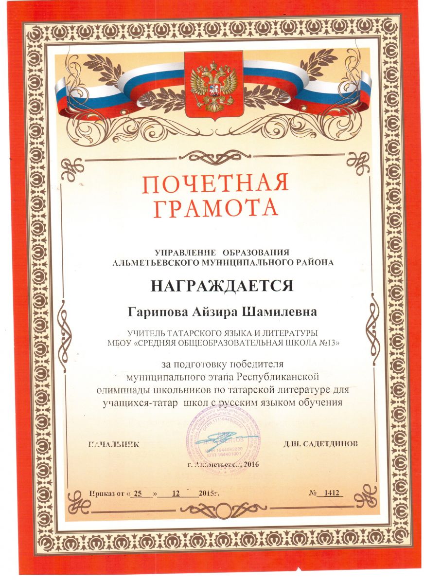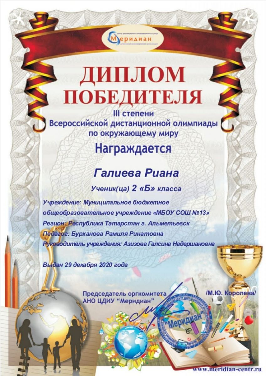 Муниципальное бюджетное общеобразовательное учреждение «Средняя общеобразовательная школа №13» г. Альметьевска Республики Татарстан