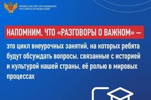 С 5 сентября в нашей школе стартовал новый цикл внеурочных занятий "Разговоры о важном". Это цикл еженедельных внеурочных занятий, построенных с учетом необходимости соблюдения единства образовательного контекста, в котором оказывается школьник вне зависимости от региона проживания, гарантирующий каждому обучающемуся доступ к интересному, полезному, просветительскому контенту, идеям, основанным на традиционных ценностях Российской Федерации.