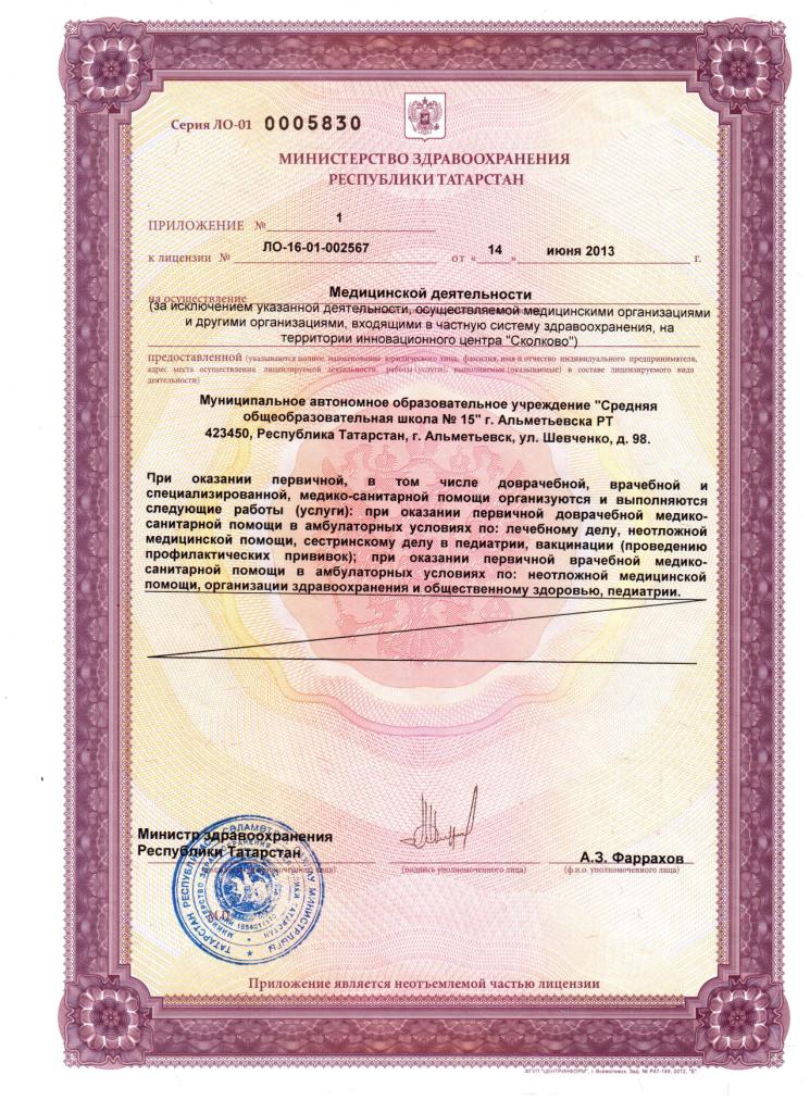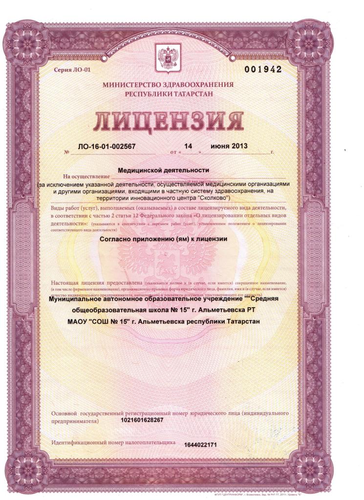 Муниципальное бюджетное общеобразовательное учреждение «Средняя общеобразовательная школа №15» г.Альметьевска Республики Татарстан