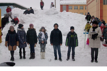 В школе праздник Масленицы. Активное участие приняли и начальные классы. Празднование проходило на спортивной площадке, на свежем воздухе.