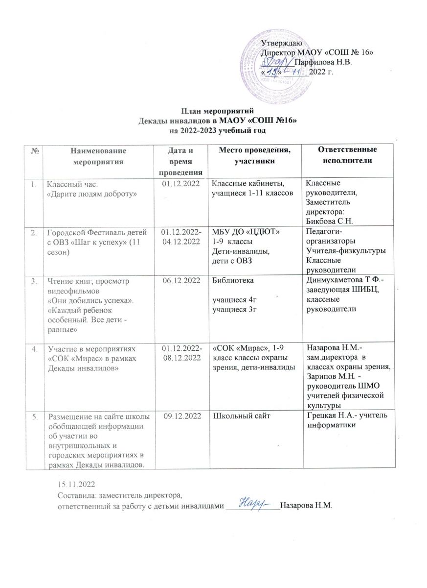 - План мероприятий на Декаду инвалидов на 2022-2023 уч год