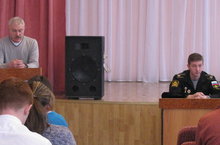 11 января в актовом зале школе прошла встреча учащихся 9-11х классов с начальником призыва военного комиссариата АМР и курсантом военного института.