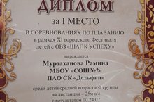 29 ноября наша учащаяся Мурзаханова Рамина приняла участие в соревнованиях по плаванию. Поздравляем с Победой! 29.11.2022