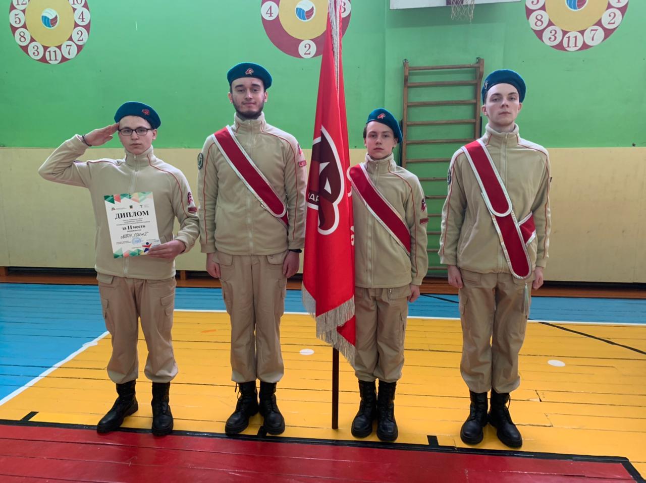 19 февраля знаменная группа школьного отряда Юнармия, заняла 2 место в смотре- конкурсе знаменных групп.