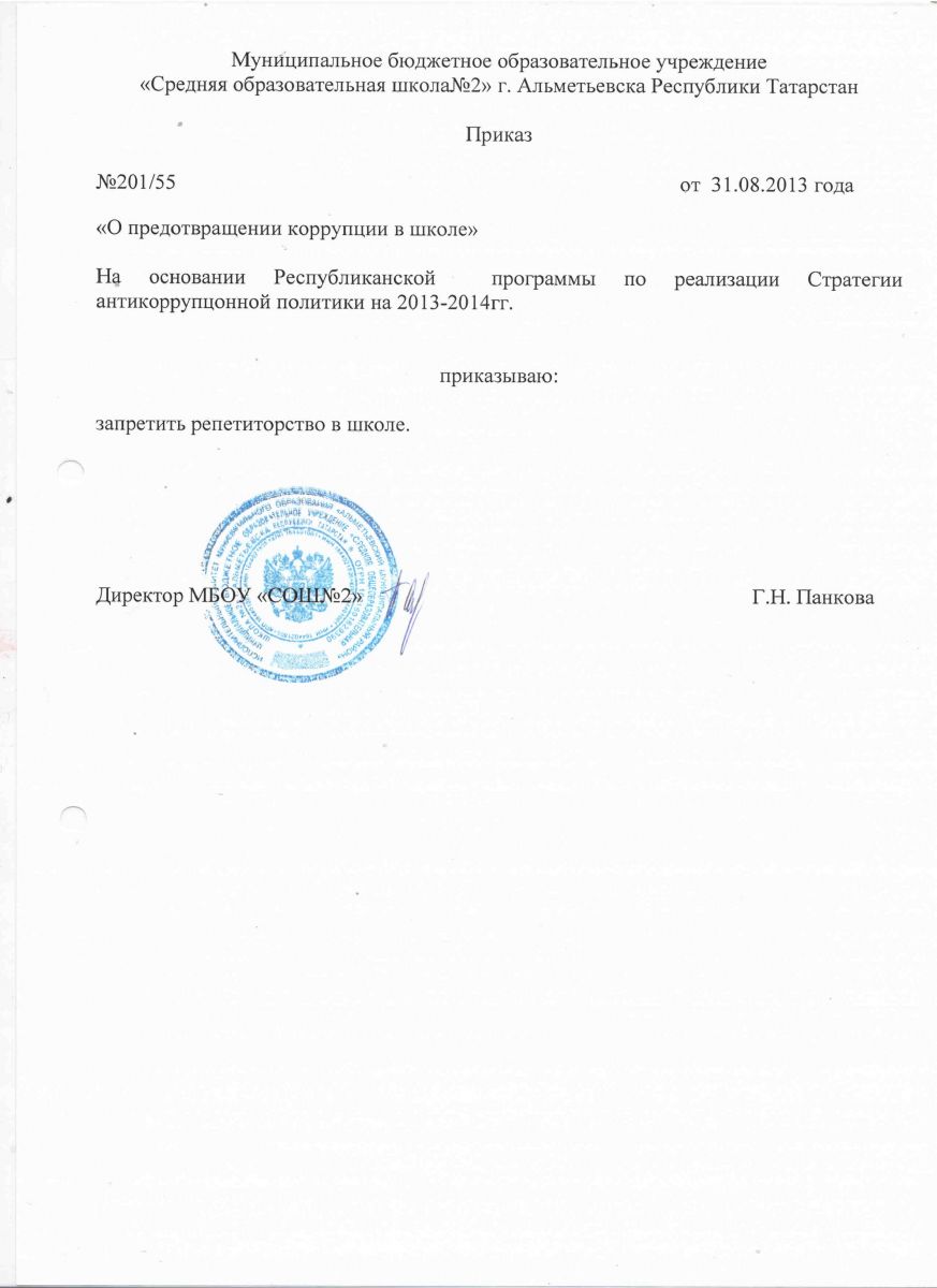 Приказ МО РТ О антикоррупционной политике