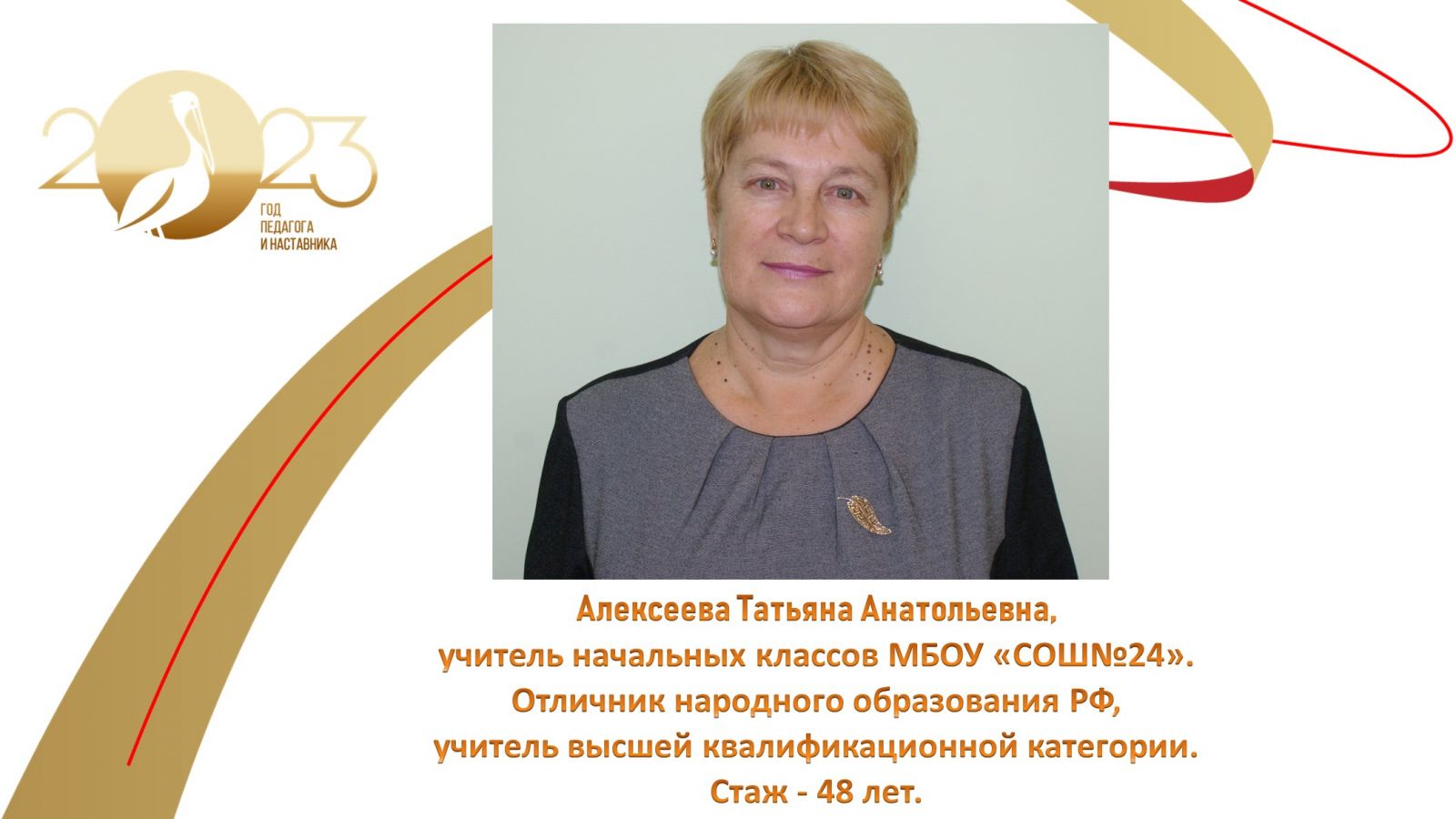 Сказать Спасибо нужно и Татьяне Анатольевне Алексеевой - учителю начальных классов, посвятившей 48 лет этому делу, отличник народного образования РФ, учитель высшей квалификационной категории!