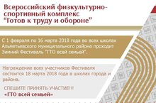 С 1 февраля и по 16 марта 2018 года во всех школах Альметьевского муниципального района проходит Зимний Фестиваль "ГТО всей семьёй" Спешите принять участие!