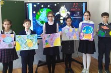 Ребята просмотрели видеоматериалы о Юрии Гагарине, узнали, кто был первым изобретателем ракеты, послушали запись с голосом Юрия Гагарина. Участвовали во всероссийском квизе «Космоквиз» в рамках годового проекта SkillCity от Мегафон. Школьники отвечали на вопросы, отгадывали загадки. Познакомились с книгами, представленными на книжной выставке «Меж звезд и галактик». И сами собрали "Звездный вернисаж". -