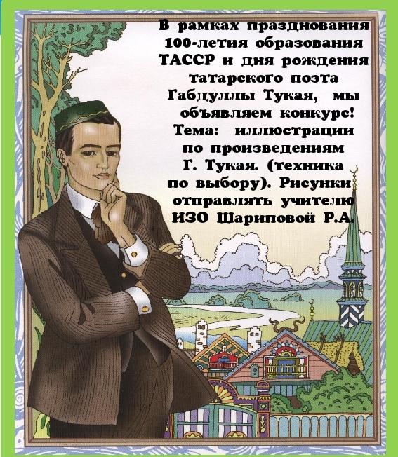 Конкурс в рамках празднования 100-летия ТАССР и дня рождения татарского поэта Г. Тукая
