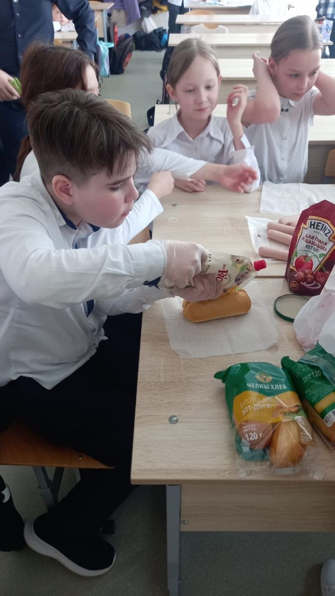 Опубликовано: 11.03.2024 Проверить работает ли эта "формула счастья" решили ребята 2а класса. Во 2-а классе прошел мастер класс по приготовлению хот-догов, его провела председатель родительского комитата класса (мама). Дети с азартом включились в процесс .Время пролетело незаметно.