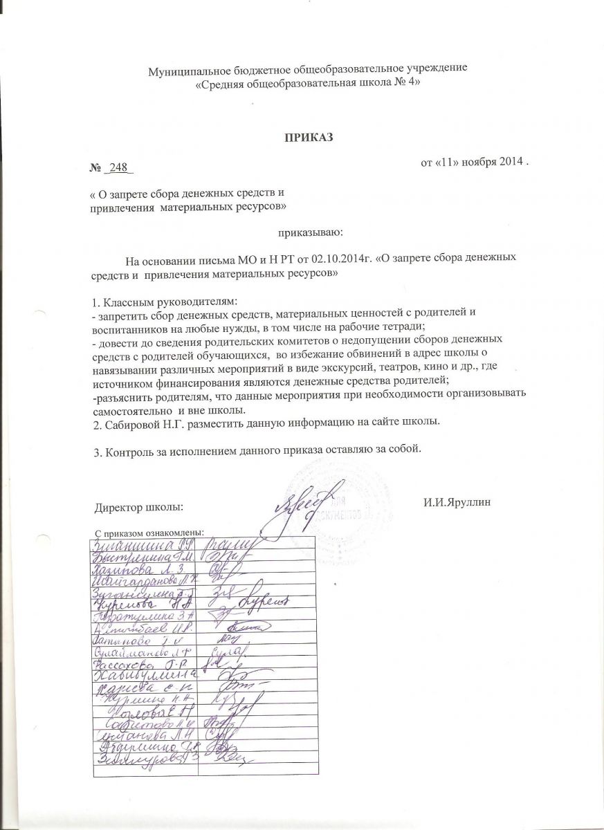 Приказ "О запрете денежных средств и привлечения материальных ресурсов" 2024 год