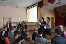 Присутствовало 43 учителя городских и сельских школ Альметьевского района. Был проведён открытый урок в 11 классе на тему «Эволюционная роль мутаций. Генетическое разнообразие популяций. Закон Харди Вайнберга». Дидактической целью урока было сформировать представления об эволюционной роли мутаций, дать знания о популяционно-видовом уровне организации жизни на основе формирования знаний о генофонде популяций и мутационных процессах в них. Для достижения цели отобраны следующие методы и формы обучения: методы стимулирования и мотивации учебно-познавательной деятельности, исследовательской деятельности, элементы сингапурской методики преподавания: ФИНК-РАУНД-РОБИН, ПЛЭЙС МЭТ, работа с учебником, компьютерные технологии. Чередование форм и методов обучения позволило уменьшить утомляемость учащихся – они были активны на протяжении всего урока.