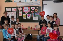 Девочки 6 класса в этот праздничный день работали почтальонами Купидона, после 4 урока они ходили по классам и вручали валентинки адресатам.