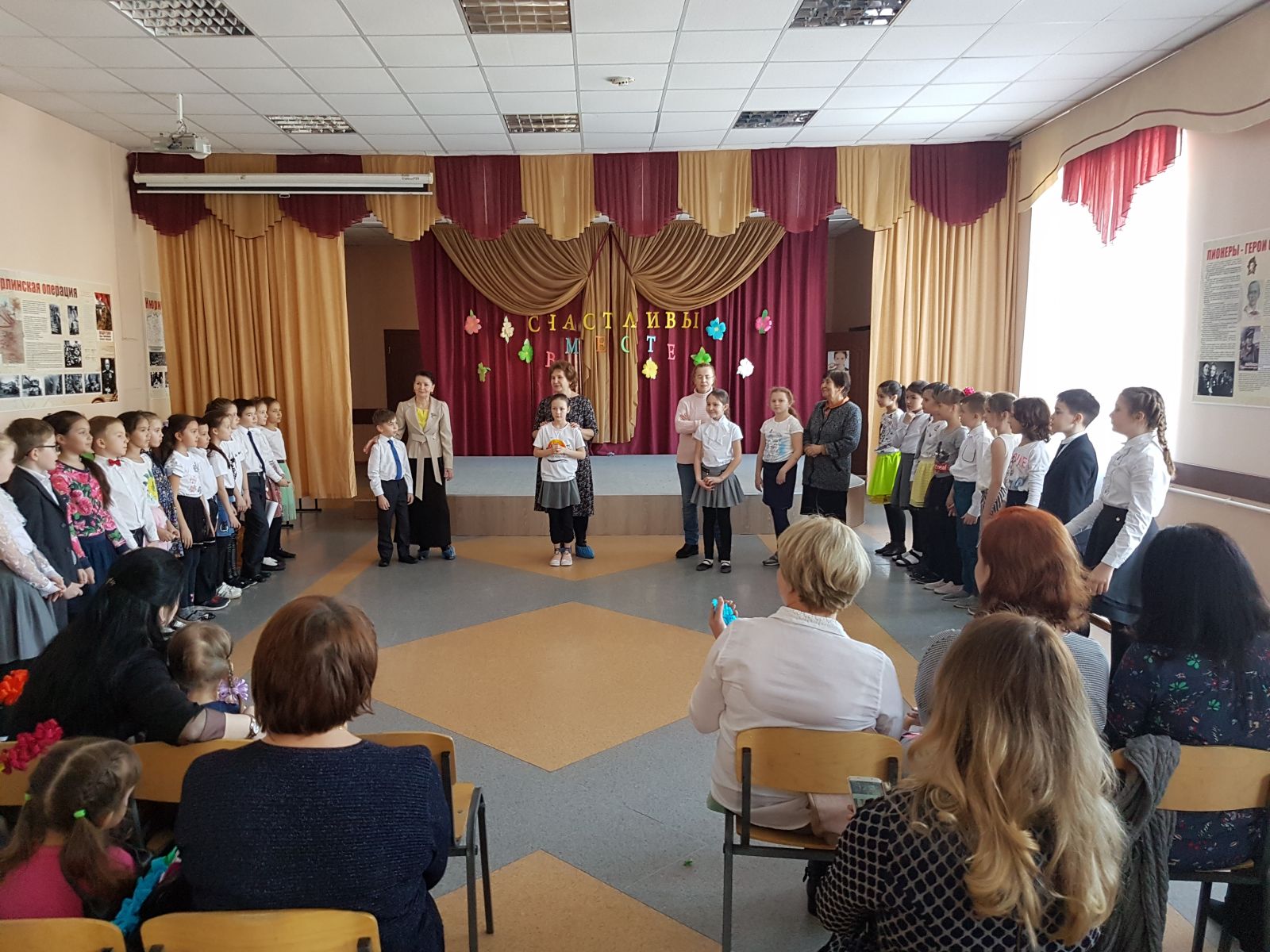 7 марта в МАОУ «Гимназия №5» силами обучающихся 3-а класса и классного руководителя Сорокиной Н.А. было проведено мероприятие для мам и пап, бабушек и дедушек «Счастливы вместе». Приглашённые смогли принять участие в конкурсах, оценить выступление детей и получить подарки, сделанные своими руками.