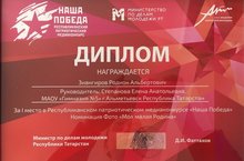 В г.Казань под патронажем Министерства по делам молодёжи РТ и Арт академии творческой молодёжи состоялся заключительный этап Республиканского патриотического медиа конкурса «Наша победа». В номинации фото «Моя малая Родина» победителем стал обучающийся 11 класса МАОУ «Гимназия №5» Зиангиров Родион, руководитель Степанова Е.А.. Поздравляем с победой!