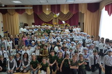 18 февраля 2020 г. в МАОУ «Гимназия №5» прошло мероприятие для обучающихся 1-4 классов Смотр инсценированной песни. На мероприятие пришли почётные гости: рядовой запаса и выпускник школы №5 Гизутдинов Олег Ринатович, сержант запаса Тухватуллин Дамир Хаснятуллович, капитан запаса Гарифуллин Рафаэль Виниаминович, подполковник запаса Еланский Евгений Геннадьевич, Рядовой запаса Голышев Виталиц Павлович.