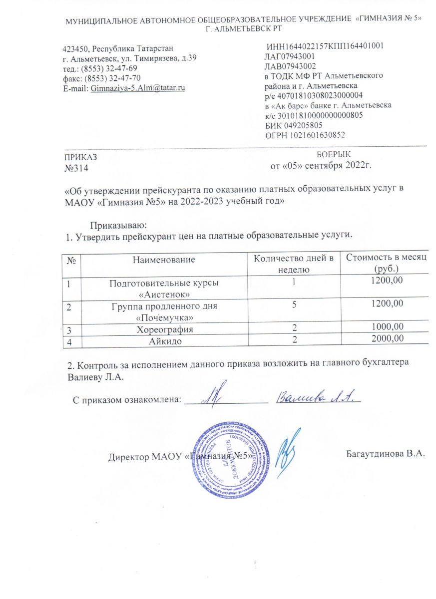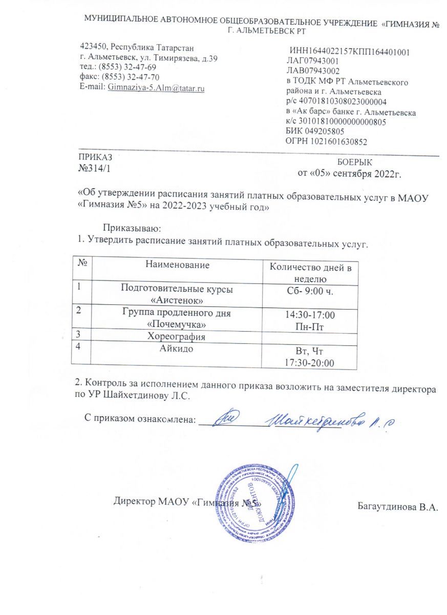 | Короткое название: | МАОУ "Гимназия №5" г. Альметьевска РТ |