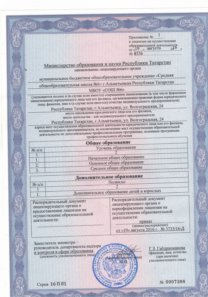 Короткое название: МБОУ "СОШ № 6" г.Альметьевска РТ