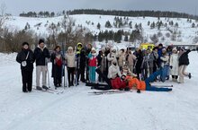 Учащиеся 10 классов совместно с учителями физкультуры приняли участие в массовом забеге во время 41 Всеросийской лыжни России.