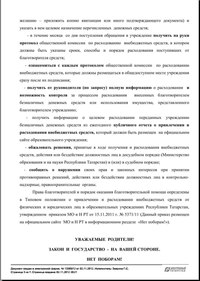 В-третьих, на поборы указывает срочность взимания денежных средств. Почему о планах на закупку парт или ремонт класса вас известили в срочном, неплановом режиме? К чему поспешность? Почему вас не подготовили за 2-3 месяца или полгода?