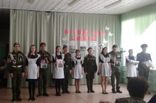 Праздничное мероприятие открыли учащиеся 1-4 класса музыкальными номерами. Они пели и танцевали под военную музыку. А учащиеся 5 класса открыли программу смотра строя. Пятиклассники маршировали под песню «Три танкиста». Прозвучали военные песни: «У пограничников зелёные погоны» 6 кл, «У солдата выходной» 10 кл, «Дан приказ ему на запад» 11 кл, «Славная победа» 7 кл, «Десанты» 8кл, «Служить России суждено тебе и мне» 9 кл. На конкурсе выступили семь команд.
