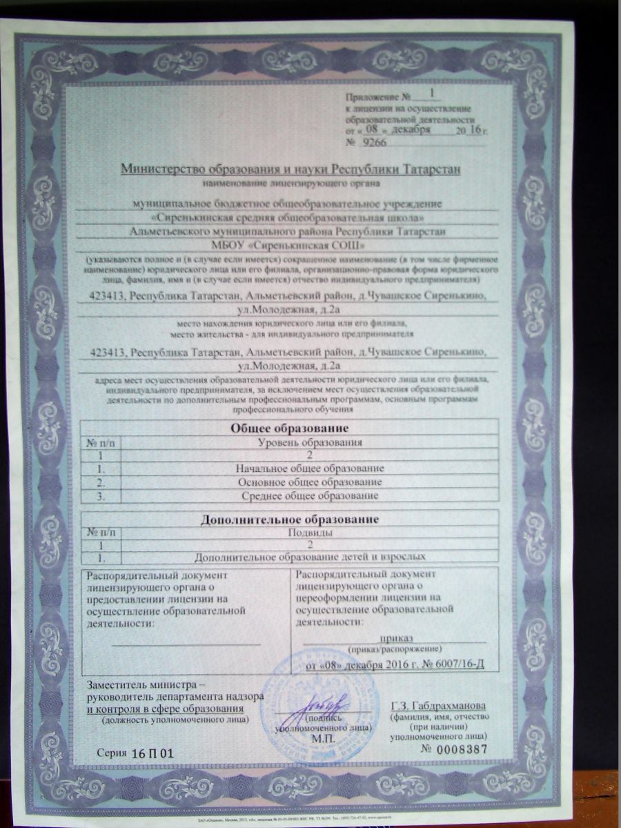 | Короткое название: | Сиренькинская средняя школа |
