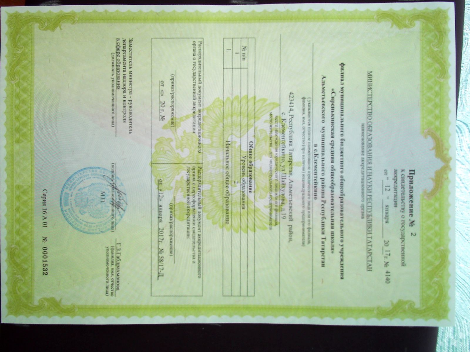 Муниципальное бюджетное образовательное учреждение «Сиренькинская средняя общеобразовательная школа» Альметьевского муниципального района РТ