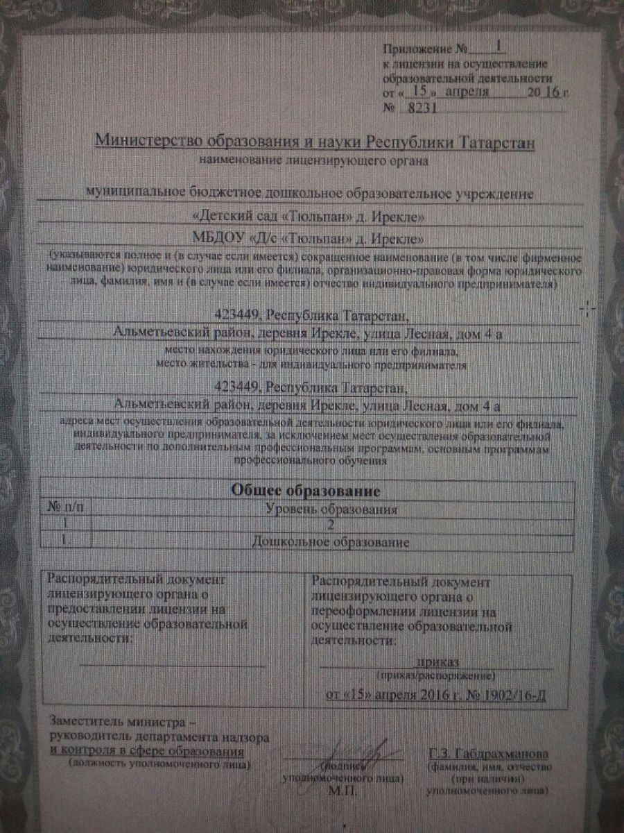 МБДОУ «Детский сад «Тюльпан» д. Ирекле Альметьевского муниципального района РТ»/ Ирекле авылы муниципаль бюджет мәктәпкәчә белем бирү учреждениясе "Тюльпан" балалар бакчасы