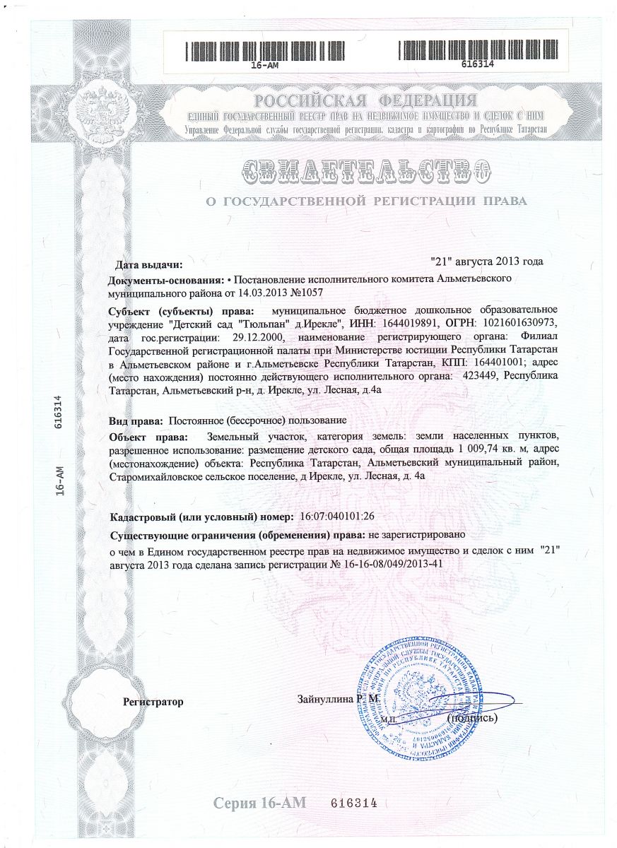 | Короткое название: | МБДОУ "Детский сад "Тюльпан" д. Ирекле" |