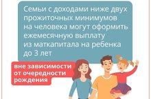 Семьи с доходами ниже двух прожиточных минимумов на человека могут оформить ежемесячную выплату из маткапитала на ребенка до 3 лет вне зависимости от очередности рождения.