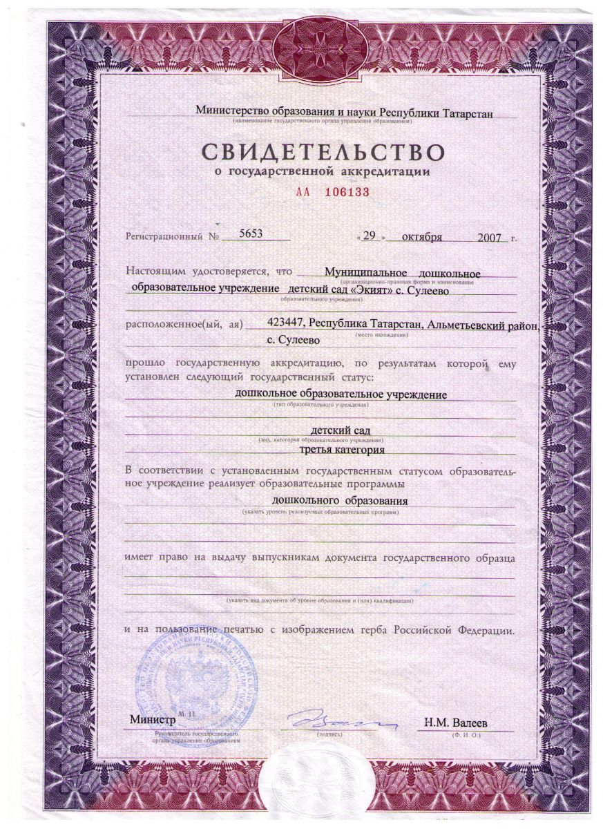 Короткое название: | МБДОУ "Д/сад "Экият" с.Сулеево" |