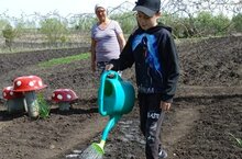Весенняя неделя добра. Ученик 5 класса Шириязданов Данияр помогает соседской бабушке убираться в саду.