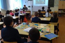 Учителя начальных классов организовали показ сеансов татарских мультфильмов. Учащимся очень понравились татарские сказки, произведения Г. Тукая.