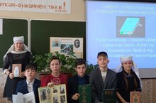 Ученицы 7-го класса Гаязова Ильсина, Юнусова Ляйсан приняли участие в республиканских чтениях "Шушы яктан, шушы туфрактан без". Они рассказали наизусть произведения Клары Булатовой.