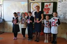 Какой же праздник без подарка? Учащиеся 4 класса подарили открытки, сделанные своими руками.