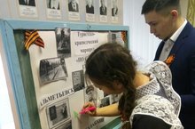 ВЕЛИКАЯ ПОБЕДА-75” Боек Жиңугэ 75 ел тулуга багышлап мәктәпләрдэ хәрби-патриотик айлык башланды. Буген безнең мәктәп укучылары зур тарихи вакыйганын шаhитлары булдылар. Сөлэй авылында туган якларына исән-сау әйләнеп кайткан hәм тыныч вакытта вафат булган Боек Ватан сугышында катнашучыларның исемнәре язылган истәлек стенды ачылу тантанасы булды. Фотода 1 сыйныф укучылары.