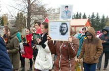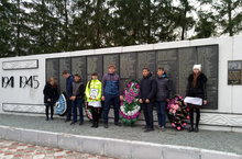 Советлар Союзы Герое М. Ахмадуллин бюсты янында.