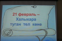 Татар теле һәм әдәбияты укытучысы Гараева Г.А. барлык сыйныф укучыларына да “Халыкара туган тел көне”нә багышланган презентация күрсәтте. “Халыкара туган тел көне”нең үткәрелә башлау тарихы белән таныштырды. Бүгенге көндә телне саклап калуның безнең төп бурычыбыз булуын аңлатты. Тел турында шигырьләрдән өзекләр, мәкальләр укыды.