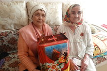 Ветеран укытучыбыз Садриева Мөзәянә апаны бүләкләү.