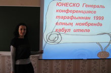 бу көн уңаеннан Татар теле һәм әдәбияты укытучысы Гараева Г.А. барлык сыйныф укучыларына да “Халыкара туган тел көне”нә багышланган презентация күрсәтте. “Халыкара туган тел көне”нең үткәрелә башлау тарихы белән таныштырды. Бүгенге көндә телне саклап калуның безнең төп бурычыбыз булуын аңлатты. Тел турында шигырьләрдән өзекләр, мәкальләр укыды.