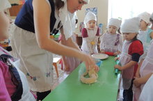 Бүген бакчабызда "Пешекчеләр көне"! Ашханә бүлмәсенә сәяхәт. Пешекчеләребезне һөнәри бәйрәмнәре белән тәбрик итү. Өлкән төркем кызлары белән камыр ризыклары әзерләү.