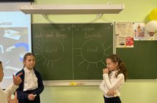 В 7-ом классе учитель английского языка провела викторину «Culinary duel»(«Кулинарный поединок»). Целью занятия была активизация лексических единиц по теме «Еда» в устной и письменной речи.