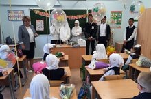 По традиции, первым слова приветствия и поздравлений прозвучали в этот день от директора школы Нургалиева Р.Р. Также учеников поздравили и гости праздника и вручили подарки первоклассникам.