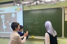 | У нас учат: | 18 учителей / 18 укытучы Обучение и воспитание в учреждении ведется на татарском и русском языках |